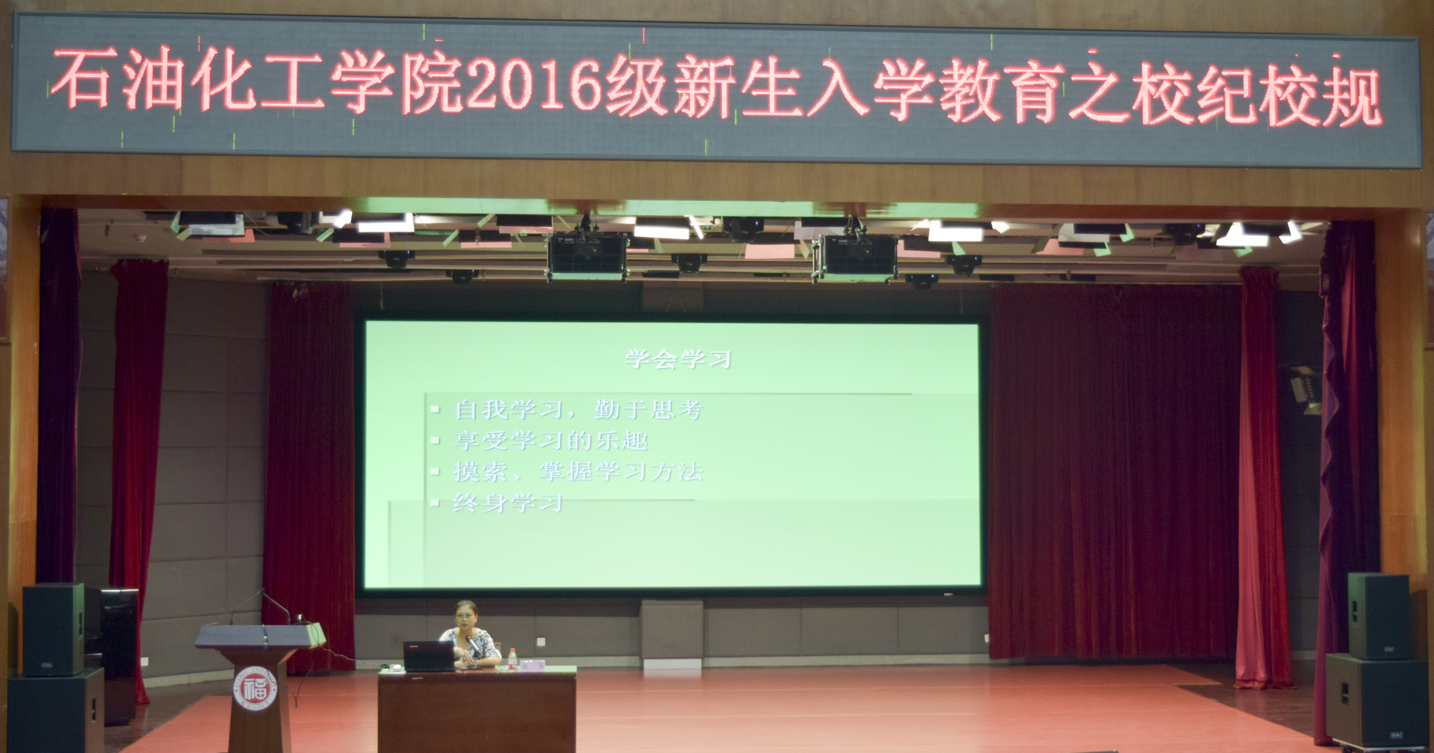 2016级新生入学教育之校纪校规讲座于图书馆博学厅隆重举行。出席本次讲座的有学院党委副书记刘玮老师、团委书记蒋林娟老师、2016级新生辅导员陈艺全老师及新生助理辅导员何杰老师。