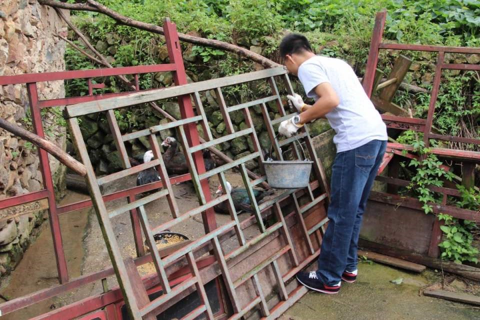 古戏里有唱到“男耕田来女织布,你挑水来我浇园”,实践队员却勾勒出“男挑柴来女拔草”的和谐画面。不仅如此,那倒塌的遮雨棚,那臭哄哄的猪粪也是在实践队员手中成功解决。接着,实践队员向村民讨教农作物的种植方法,在田地里插下了自己的第一根秧苗。