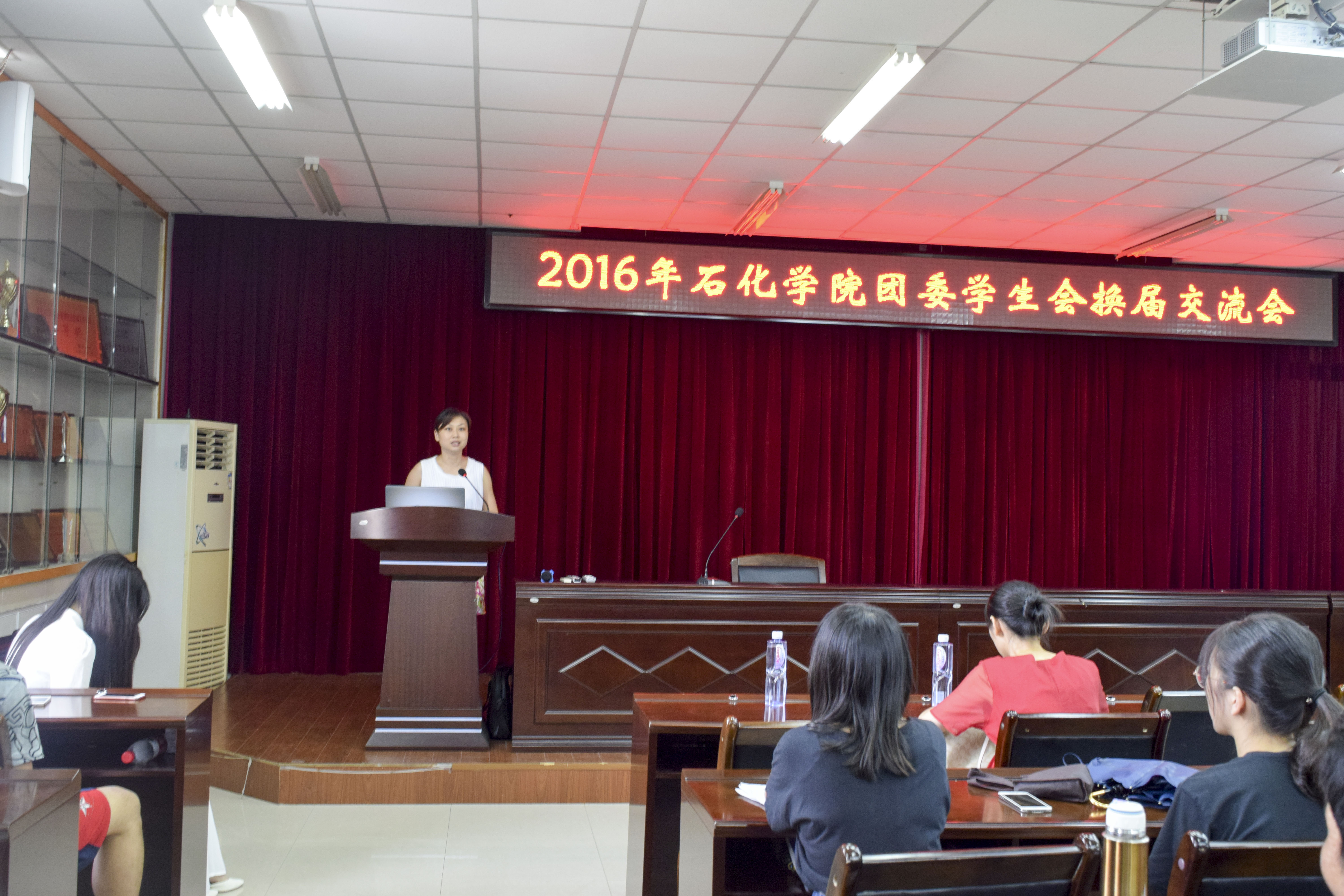于嘉锡楼413举办2016年团委学生会换届交流会,党委副书记刘玮老师、团委书记蒋林娟老师出席本次会议。