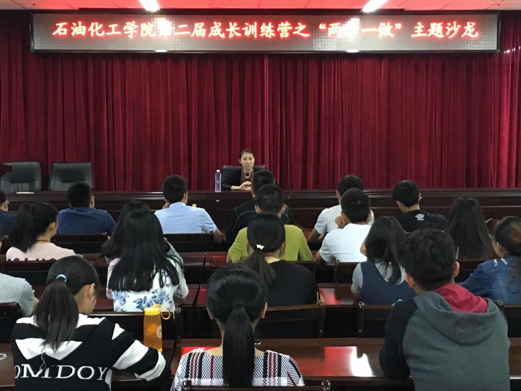 团委书记蒋林娟老师,在嘉锡楼413报告厅为成长训练营成员开展讲座——学生干部如何实践“两学一做”,帮助学生平衡学习和社会工作的关系,从而更好的发挥学生干部党员、积极分子的先锋模范带头作用。