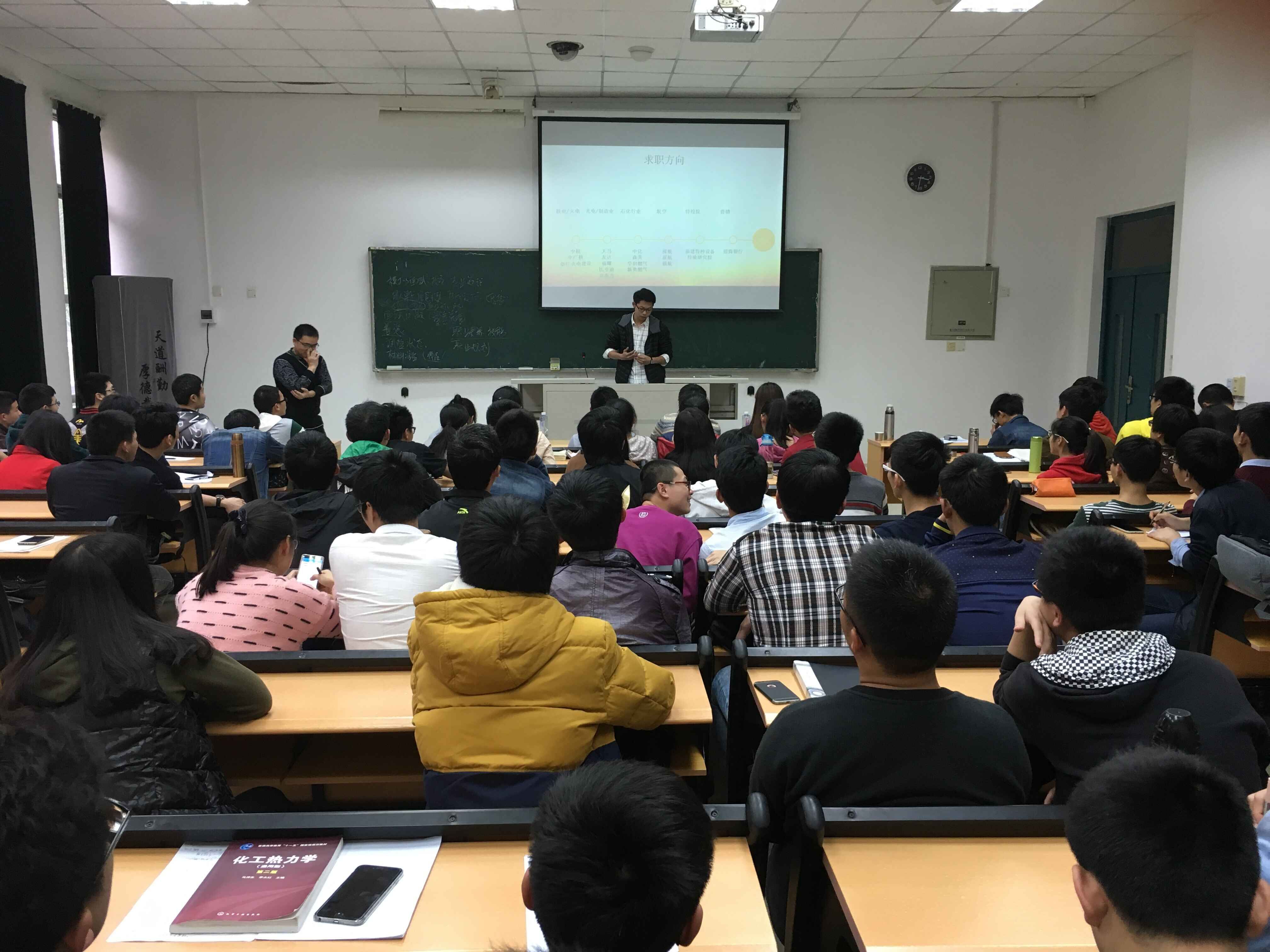 “想清自己能做什么,想做什么,该放弃什么。”进入联合石化的陈晓梁分享了他的求职心法,并且给学弟学妹们介绍应聘技术岗的面试技巧。过控专业毕业生林惠强用数据分析过控专业的就业去向,他风趣的语言、清晰地条理、看门见山的风格,赢得了同学们阵阵热烈的掌声。