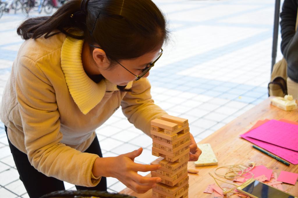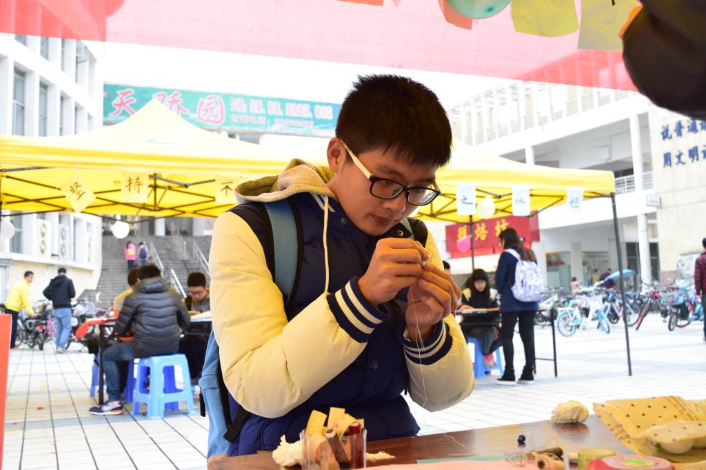 其中不得不提的是“记忆翻牌”和“穿针引线”两个游戏。极其考验专注力和耐心,这正是在我们的学习中是必不可少的两样因素。现场也不时地可以看到拿到奖品的同学心满意足的笑容。与此同时,活动现场被多种神情填充着,认真、专注、紧张亦或是镇定,让整个活动的氛围看起来温馨和谐。就真的像是泛游在知识海洋中的人们一样。