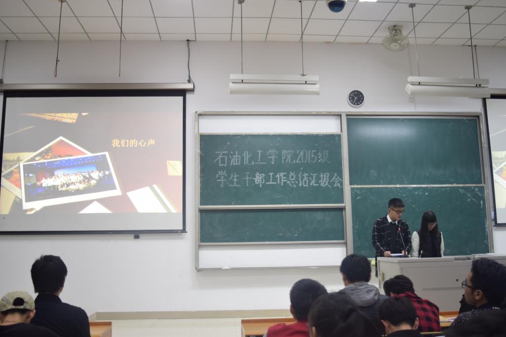 2015级学生干部汇报会议圆满结束。总结了过去这一年里的崭新大学生活,我们看见了每个班级的闪光点,同学们也都更有信心面对接下来的期末考以及下学期的学习生活。对于即将共度新的一年,我们拭目以待。