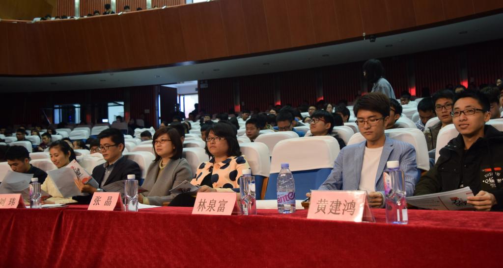 一段热情奔放的歌曲串烧拉开了活动的序幕。开场表演之后,2014级和2015级各班级依次上台,用创新独特的方式展现班级班风建设和班级文化。14级化工三班的展示设“极品女生队”和“屌丝男士队”两队,王牌对王牌,以两队竞争的形式展现了班级的学习工作和文体活动情况。15级过控二班的展示以游戏“大富翁”的方式展开,从起点到终点,每个方格都蕴藏着班级点滴,向观众展现了班级特色活动和班级学风。15级化工六班模仿电视节目“小崔说事”,创造性的办了一个“大叶说事”,以幽默风趣的口吻将班级特色向观众娓娓道来。所有班级风采展各有特色,各有不同,或深情温馨,或生动幽默,或动感活泼。同学们感到欢喜的同时,也对班级文化有所了解,班级自豪感极大增强。展示间期,主持人还和观众进行了微博墙互动,全场气氛热烈。展示过后,陈永福老师发表讲话,对各班展示进行了点评,对班级建设提出了建设性意见。