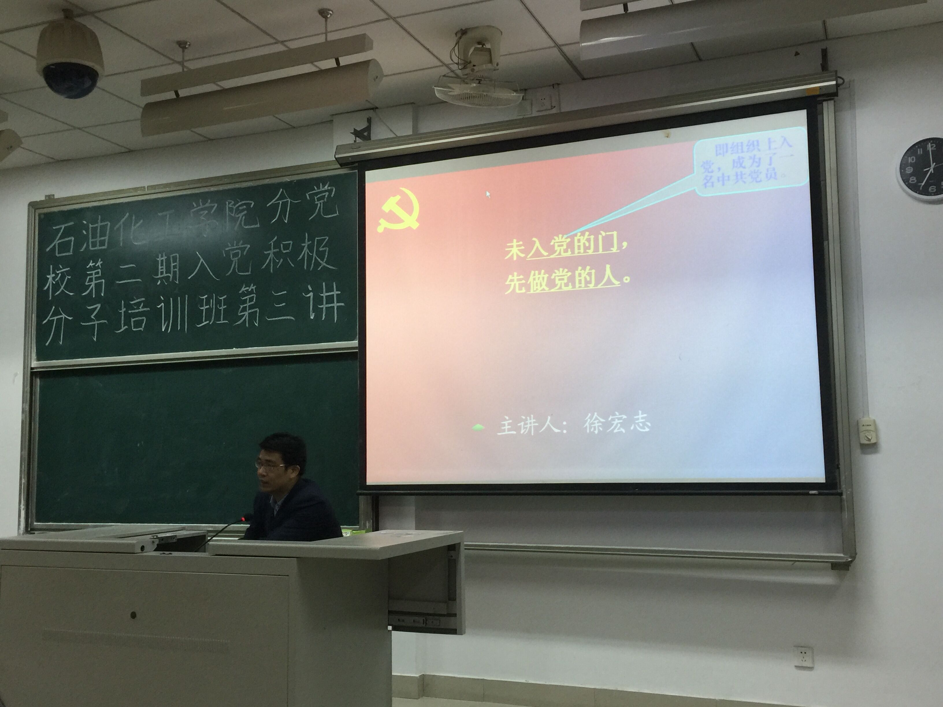 分党校第二期入党积极分子培训班第三讲在文二-203顺利进行。此次培训由校组织部徐宏志副部长主讲。本次讲座旨在端正积极分子的入党动机,未进党的门,先做党的人。