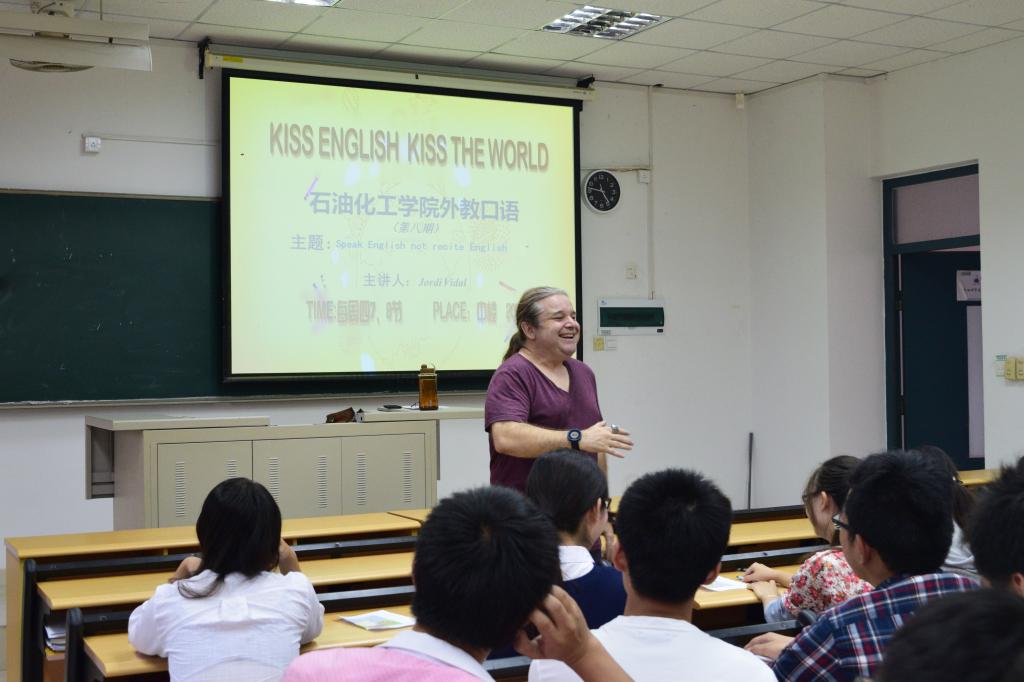 在课程的开始,Jordi老师便带着不舍说明本次课程是这学期最后一次外教课,所以,他希望在有一个好的开端之后,能有一个好的结尾。在课上,Jordi老师总结了学习口语的关键,认为老师在学习过程中只是起了一个guide的作用,而不是teach。学生们不应该以My English is poor为借口而不愿开口讲英语。老师更是幽默地打了一个比方:“If you buy a bicycle every day and put it there ,but you don’t know how to use it”,形象说明如果学习一门语言只是单纯记住词汇而不知道如何应用,那么就算你学会再多,也只是纸上谈兵。同时老师还希望学生能有“厚脸皮”的精神,建立自信,告诉自己I can do it 。