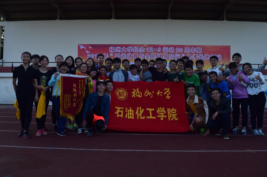 随着一切安排就绪,在两点半的时候活动正式开始,待老师致辞完毕后,枪声响起,运动员们奋起冲刺,仿佛将80年前学生爱国运动重演。雨过天晴的福大,像是在为环校跑喝彩。男生们迈开双腿向前拥去,就像一个个战士浴血奋战;而随后而来的女生们,也有着巾帼般勇气,一点不让须眉。十七个学院,几百个学生,在午后的校园内为纪念“12.9运动”而奔跑着。再放眼石化学院,一点不甘落后,每个运动员都全力以赴,挥洒着汗水,带着“振兴中华”的勇气,带着青春的气息,为荣誉而战。