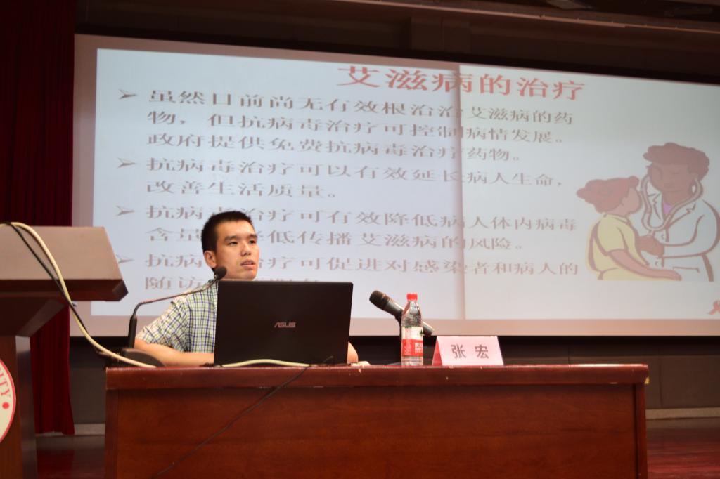 在整场讲座中,张宏医师用真实的事例、客观的数据,主要从艾滋病的起源、发展、传播途径、危害、预防以及如何关爱、不歧视艾滋病患者六个方面向同学们介绍了艾滋病的相关知识。虽然话题严肃,但是讲师幽默有趣的讲话风格也令同学们情绪高涨,更有积极的同学与讲师进行了互动。