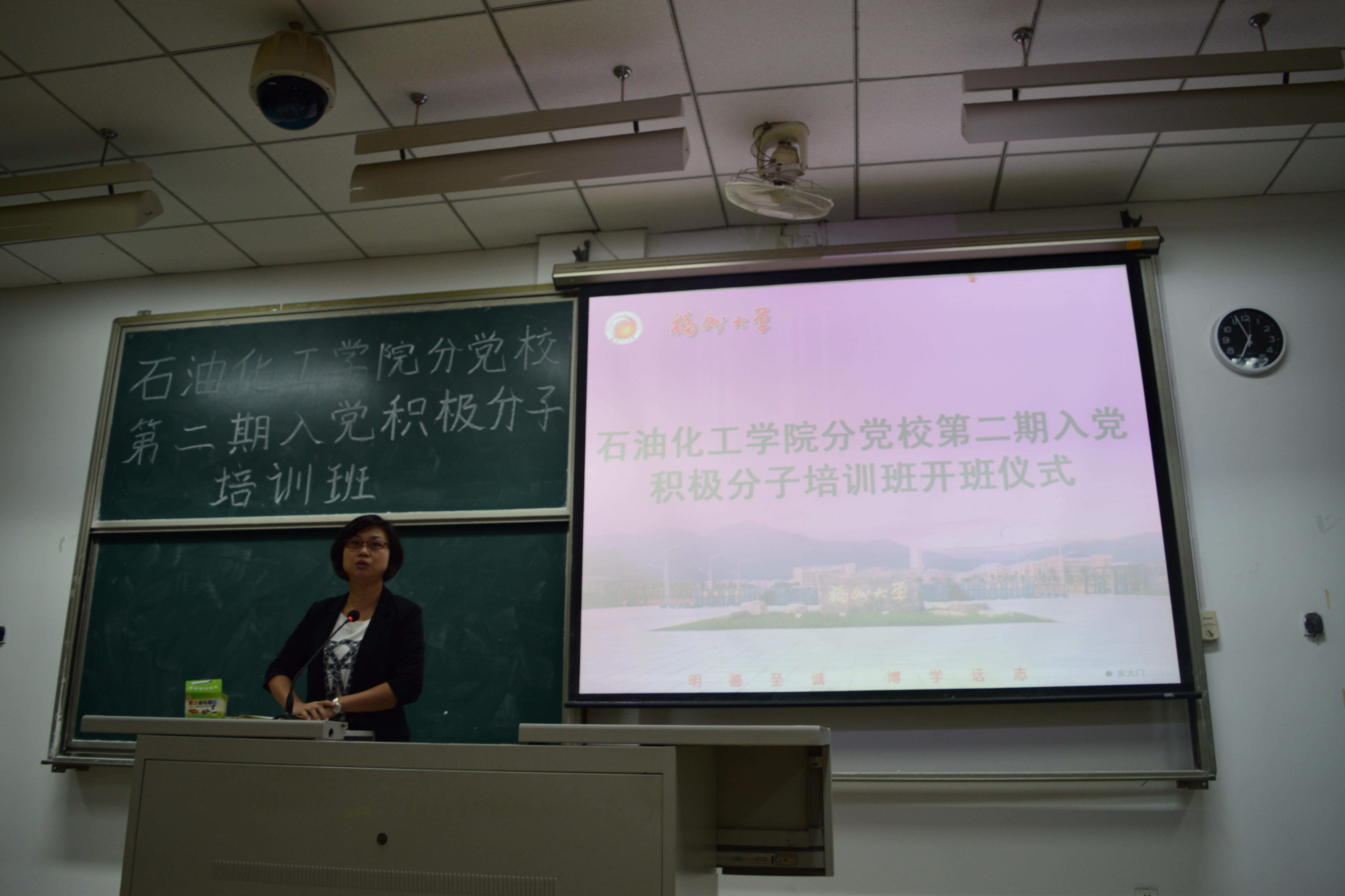 分党校第二期入党积极分子培训班开班仪式在文二-203顺利举行。此次培训由院党委叶志清书记主讲,院党委副书记刘玮老师主持。旨在端正积极分子入党动机,未进党的门,先做党的人。