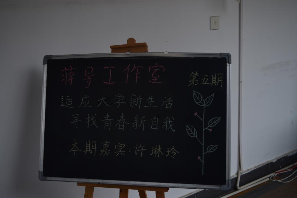 于院办开展了第五期蒋导工作室。本期活动以“适应大学新生活,寻找青春新自我”为主题,特邀福大心理中心许琳玲老师,为新生们解疑答惑。