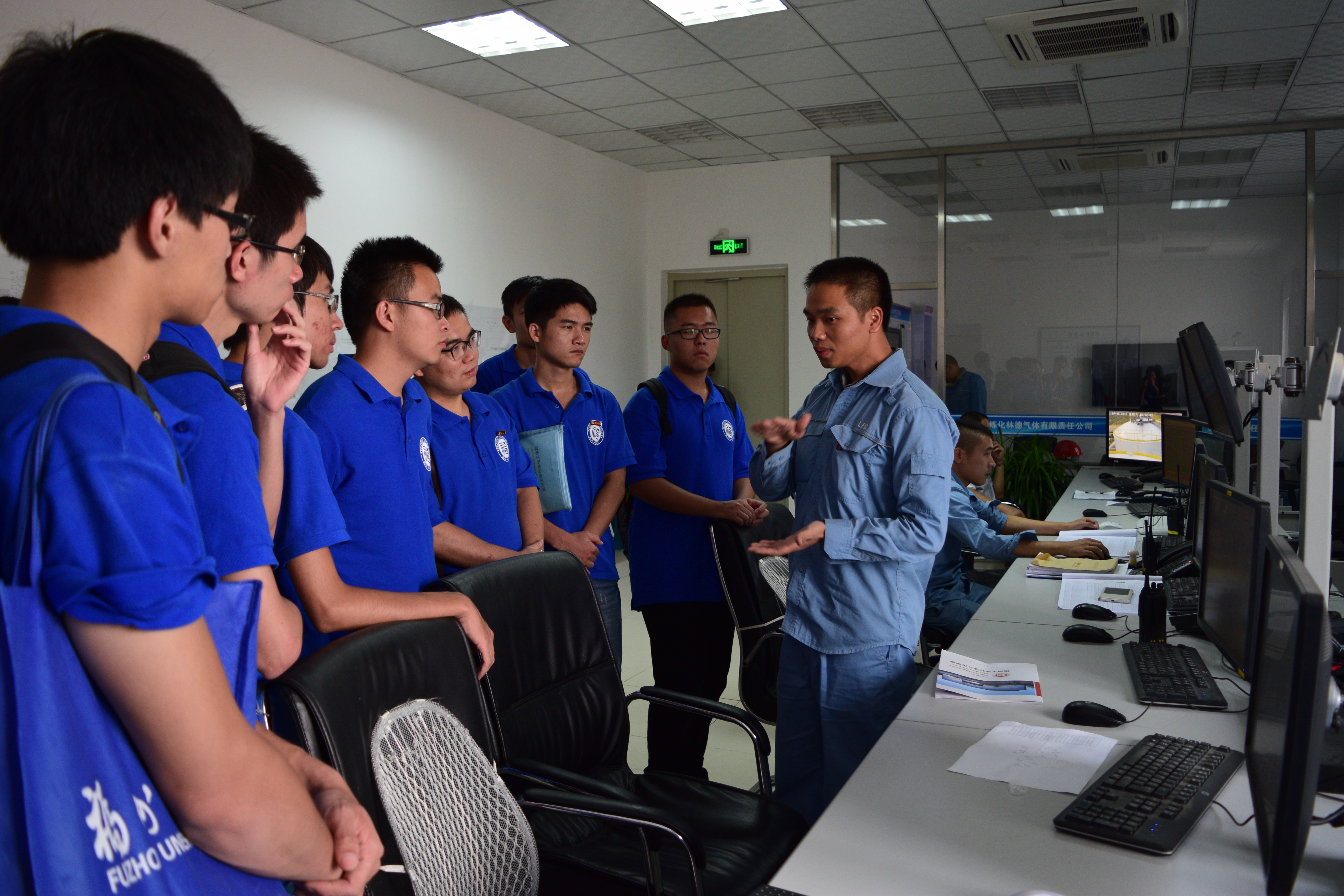 林德气体责任有限公司是一家中外合资企业,一抵达公司,实践团就注意到了竖立在公司门旁的立牌“紧急疏散点”,林经理带领实践团到达会议室,为实践团讲解安全问题,该公司十分注意安全管理,更有安全“五步法”。“没有安全的保障,就没有有条不紊的工作秩序,”经理说道。公司的主要业务即提纯如氮气、二氧化碳等市场需求的管道气体,在座谈中,实践团也了解到公司所面临的安全性、产品可靠性、经济效益等挑战。在交流中,实践团深深地感受到了公司浓厚的人文气氛,以“风正,气顺,人和,心齐”为旨,举办各类晚会、舞台剧、员工灭火器使用大赛等,同时热心致力于公益事业。实践团在公司中不仅感受到了井然有序的工作,更多是一种除工作以外的人文关怀。