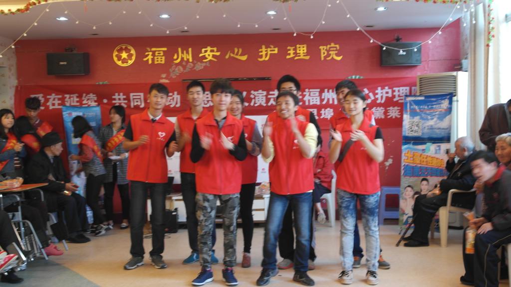 再一次来到敬老院的同学们和这里的老人们多了一丝亲切感,友善地和我们的老人们聊起天来。为了给老人们带来欢快的表演和保证微电影的拍摄,同学们在一旁排练起了节目,只为了展现最好的一面给我们可爱的老人们。活动开始,志愿者们首先带来了热力四射的舞蹈----小苹果。欢快的舞蹈带来的是无限的青春与活力。活动间隙,志愿者们去探望了几位因行动不便而无法来观看表演的老人们。虽然看不到精彩的表演,但志愿者的到来依旧给这些老人们带来欢笑。最后,志愿者带来了一首老歌---甜蜜蜜,真心祝愿我们的老人们都能拥有甜蜜蜜的生活。同学们还献上亲手制作的玫瑰花,表达志愿者们的一片心意。