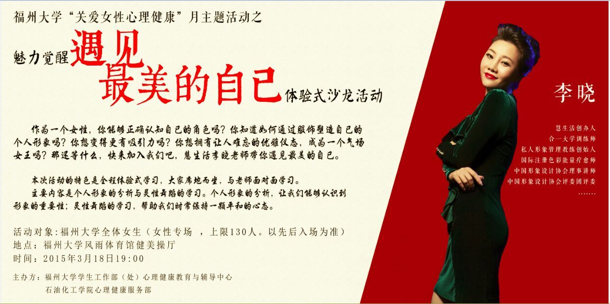 “关爱女性心理健康”月主题活动之《魅力觉醒——遇见最美的自己》体验式沙龙活动