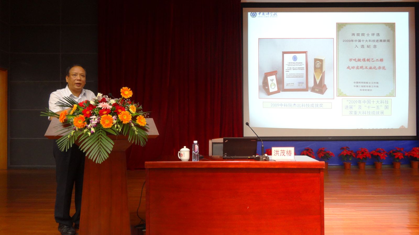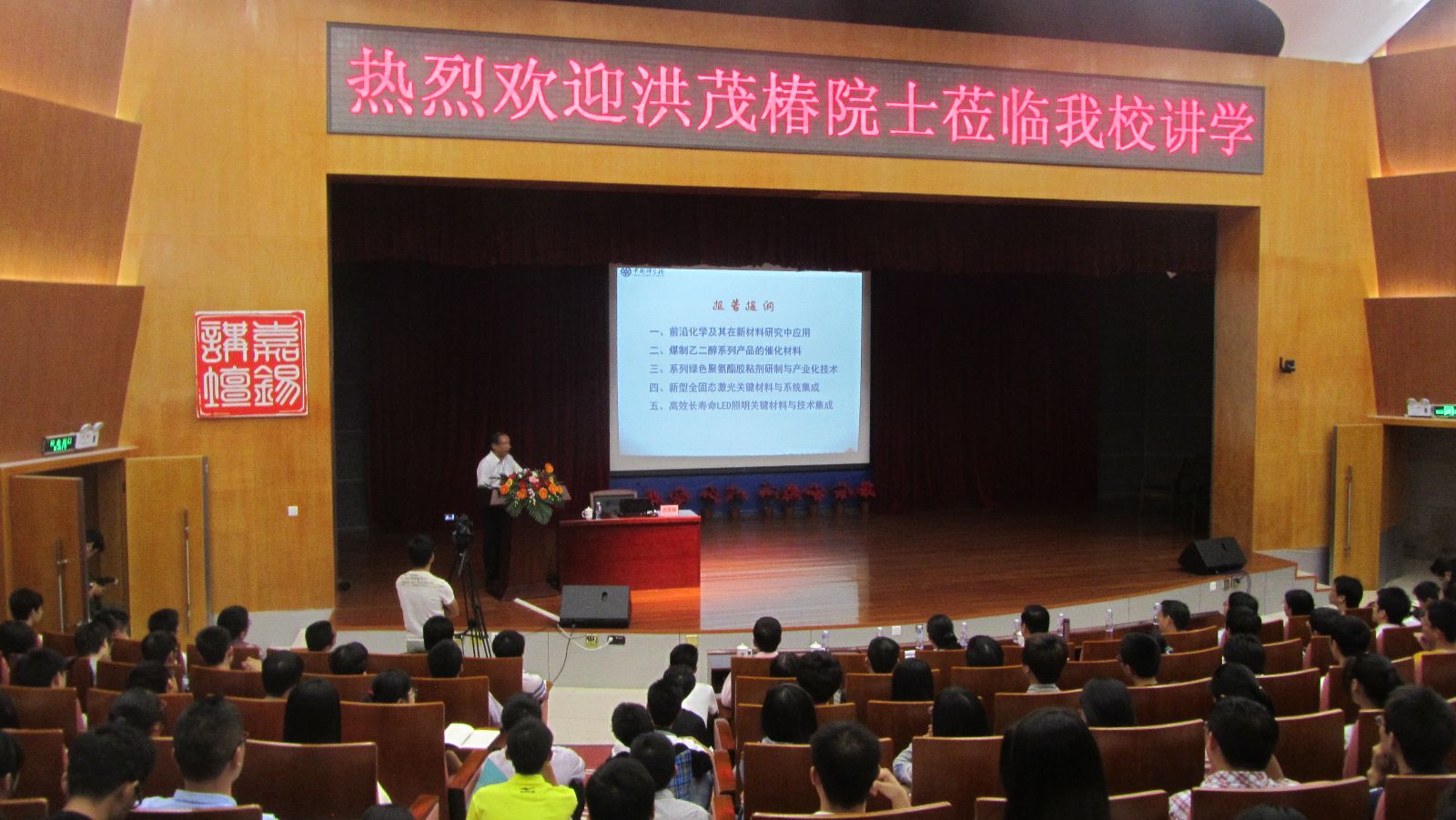 报告会上,洪茂椿院士具体阐述了化学前沿研究的新思路,以煤制乙二醇系列产品的催化材料、系列绿色聚氨酯胶粘剂研制与产业化技术、全固态激光关键材料与系统及高效长寿命LED照明关键材料与技术集成为创新科研实例深刻解读了化学研究的新思路、新方法,同时充分展示了其科研团队在相关科学问题上的创新能力及产业化应用成果。洪茂椿院士指出,化学工作者应瞄准国家重大需求和重大科学问题,以功能为导向构筑新材料研究价值链,开展关乎民生的创新科学研究。洪茂椿院士的报告内容新颖,贴近现实,形象生动,启发性强,让同学们受益匪浅。
