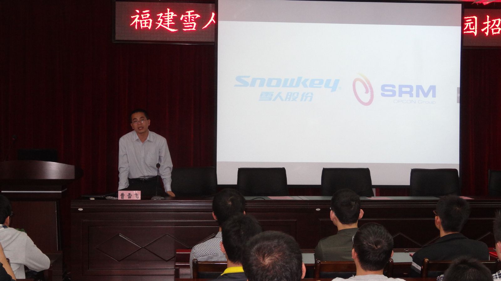 最后,福建雪人股份有限公司在会议室举行2013年校园招聘宣讲会。