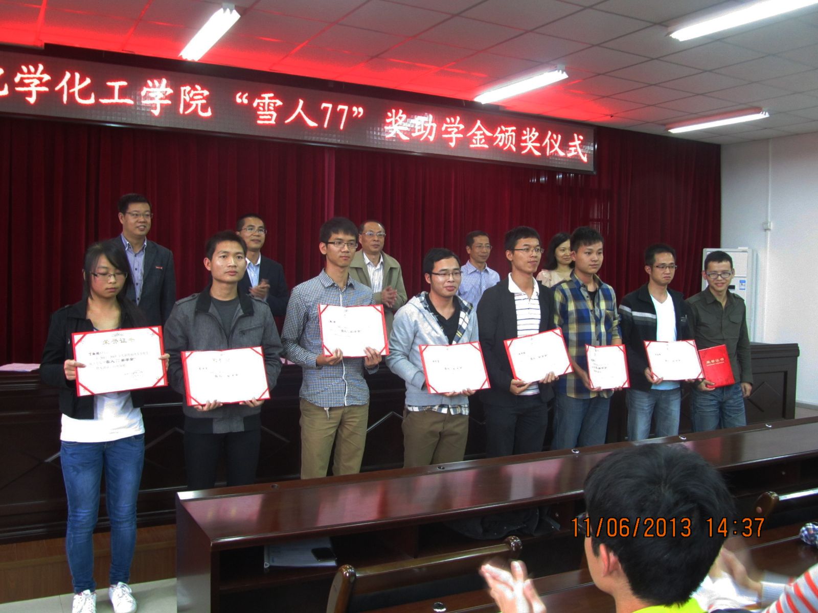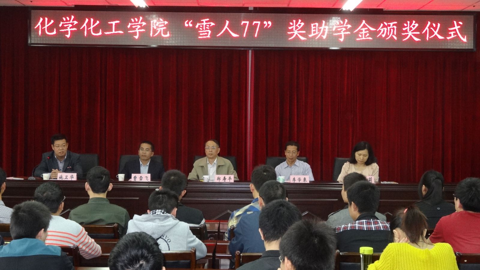 党委施卫华副书记,团委书记陆莉莉老师,及化学过程装备与控制工程专业学生。颁奖仪式由党委副书记施卫华主持。
