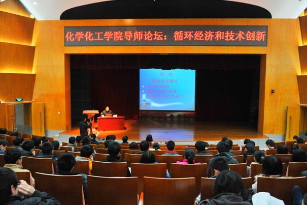 蔡永亮工程师先向大家介绍了循环经济的定义,他指出循环经济,是以资源的高效利用和循环利用为核心,以“减量化、再利用、资源化”为原则,以低消耗、低排放、高效率为基本特征,是对“大量生产、大量消费、大量废弃”的传统增长模式的根本变革,符合可持续发展的理念。随后,他以其独到的企业理念与切身的项目经历,与在场师生分享了循环经济模式的案例,重点列举了福建省湄洲湾氯碱公司的情况,介绍了各种工艺方框图,他坚信“在化工科学工作者的眼里—这个世界没有废物”。同时,蔡总还从减少投资费用、原料费用、运输费用等方面进行分析,指出技术创新下的循环经济具有更广阔的节能减排和利润增长空间,值得我们去学习,去推广利用。最后,蔡总工还与在场的同学们做深入的探讨与交流,为同学们答疑解惑,并对同学们寄予真挚的祝福与期望。