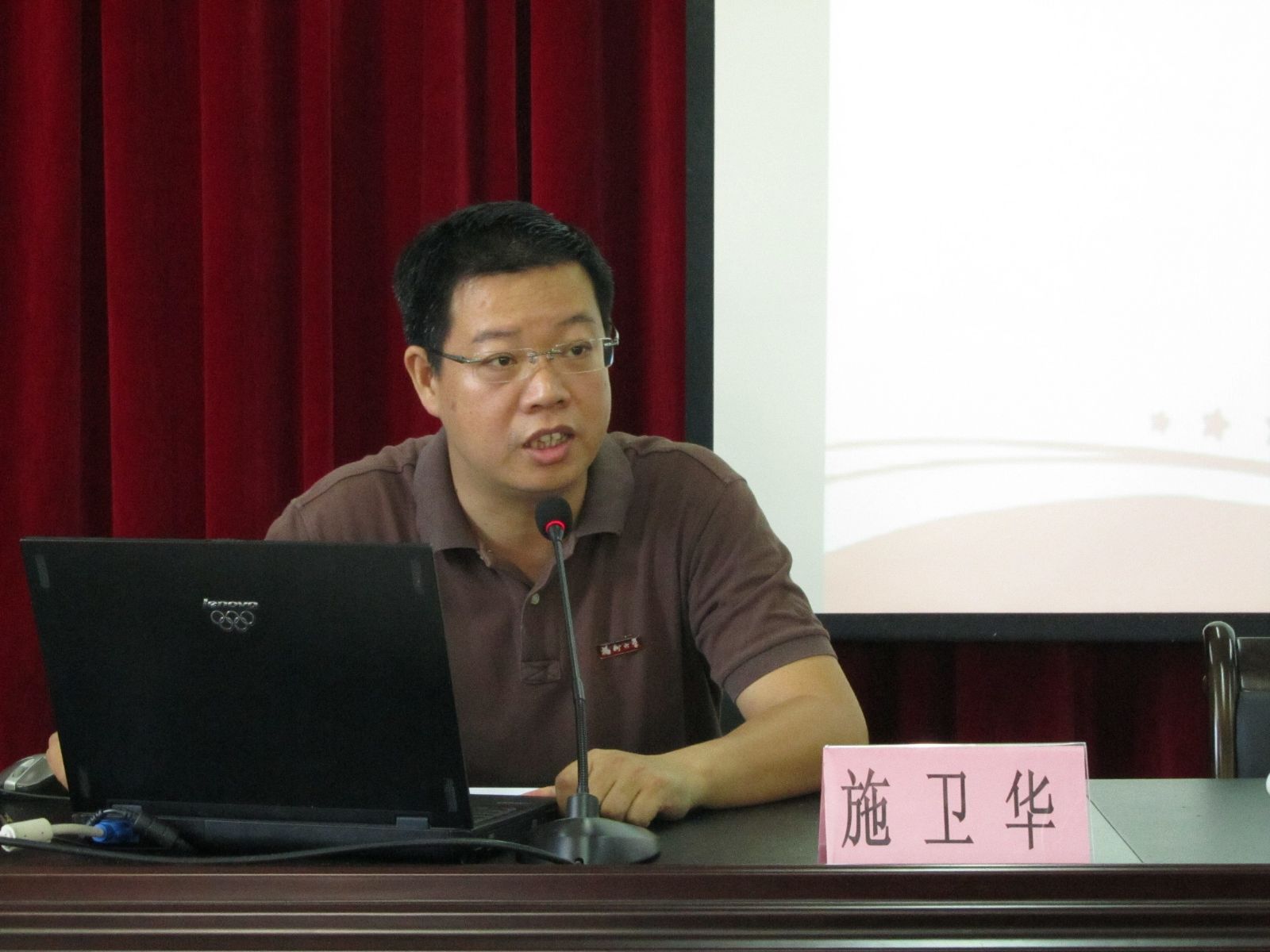 随后,学院党委副书记施卫华老师为大家带来第一讲:《端正入党动机、积极创先争优》。施老师从“什么是入党动机”、“为什么端正入党动机”及“怎样端正入党动机”三个方面逐步展开,深入浅出地指导大家端正入党动机,树立正确的价值观与坚定信念,以党员标准严格要求自己,在为人民服务中实现人生价值。