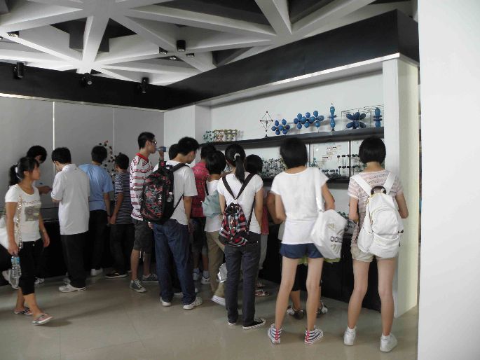 的一些科研工作和成果的介绍,在参观过程中,新生们被摆在橱柜上的各种化学原子结构模型深深吸引,纷纷表示对自己即将学习的科目充满兴趣与憧憬。
