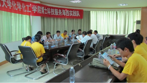 校团委书记黄阿火老师、校团委副书记叶志清以及校团委其他老师一行对我博士实践团进行慰问。院党委副书记施卫华老师向校团委介绍我博士实践团这几天的实践工作后,校团委书记黄阿火老师对我博士实践团的实践务实、高效的实践活动表示了高度的赞同,并提出“最有效率、最高学历、最强科技”的“三最”来概括我博士实践团的能力,使我博士实践团的每一名成员都受到了鼓舞,坚定了为海西建设服务的信心。