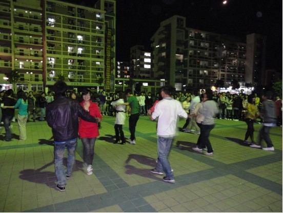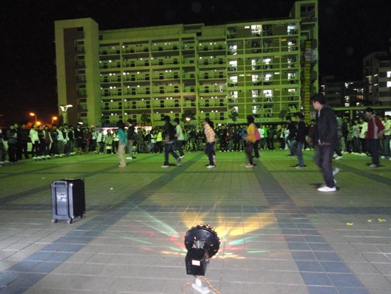 研究生会和酷玩协会联合举办的首届“光棍节”舞会即将开始。随着主持人精彩的开场白,活力四射的街舞拉开了本次舞会的帷幕。舞音未落,由酷玩协会成员领舞的《爱你》、《快乐崇拜》舞曲不断上演。紧接着,一首首舞曲慢慢展开。节奏强烈鲜明的《so crazy》、柔情扭动的“恰恰”,浪漫迷人的《泰山与珍妮》,把握着舞动的脉搏,记录着曼妙的身姿,挥霍着沉醉的夜晚。夜幕之下,迷幻的灯光,悠扬动感的舞曲,潇洒旋转的身姿,令全场沉浸于“舞林”之中,感受舞蹈的魅力和魄动。歌曲对唱时而宁静时而狂野,是精神的陶醉,更是心声的传达。