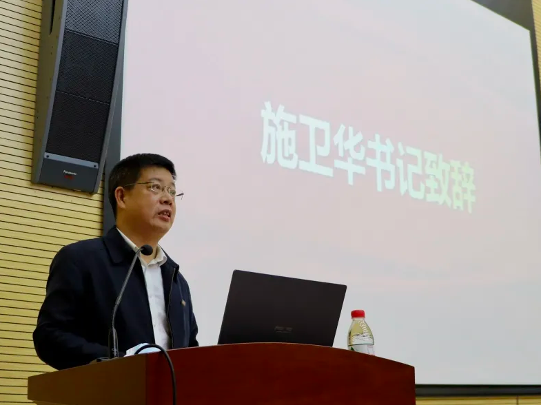 党委书记施卫华老师满怀期望与热情进行致辞,希望青年骨干能够将理论与实际相结合,可以为学生工作做出新的、重大的贡献,能在各项活动起到积极模范作用,坚持理论联系实际并切实提高履行职责的能力和水平,作为一名中国特色社会主义事业的建设者和接班人,完成所肩负的历史使命。