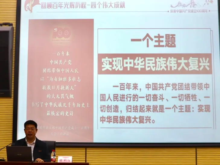 短暂休息过后,施卫华书记开始了青马班培训课的第一讲。此次课程围绕着一个主题展开——实现中华民族伟大复兴。施卫华书记从回顾百年光辉历程—四个伟大成就、诠释中国共产党的伟大建党精神、新征程·开创美好未来—九个必须、全面贯彻落实“一国两制”方针和寄语全院广大青年五个要点进行讲解,理论与数据相结合,生动地展现了中国百年变迁的恢弘之气。课程最后,施卫华老师引用习近平总书记对青年“坚定理想信念,站稳人民立场,练就过硬本领,投身强国伟业”的寄语与学员共勉,令人意犹未尽。