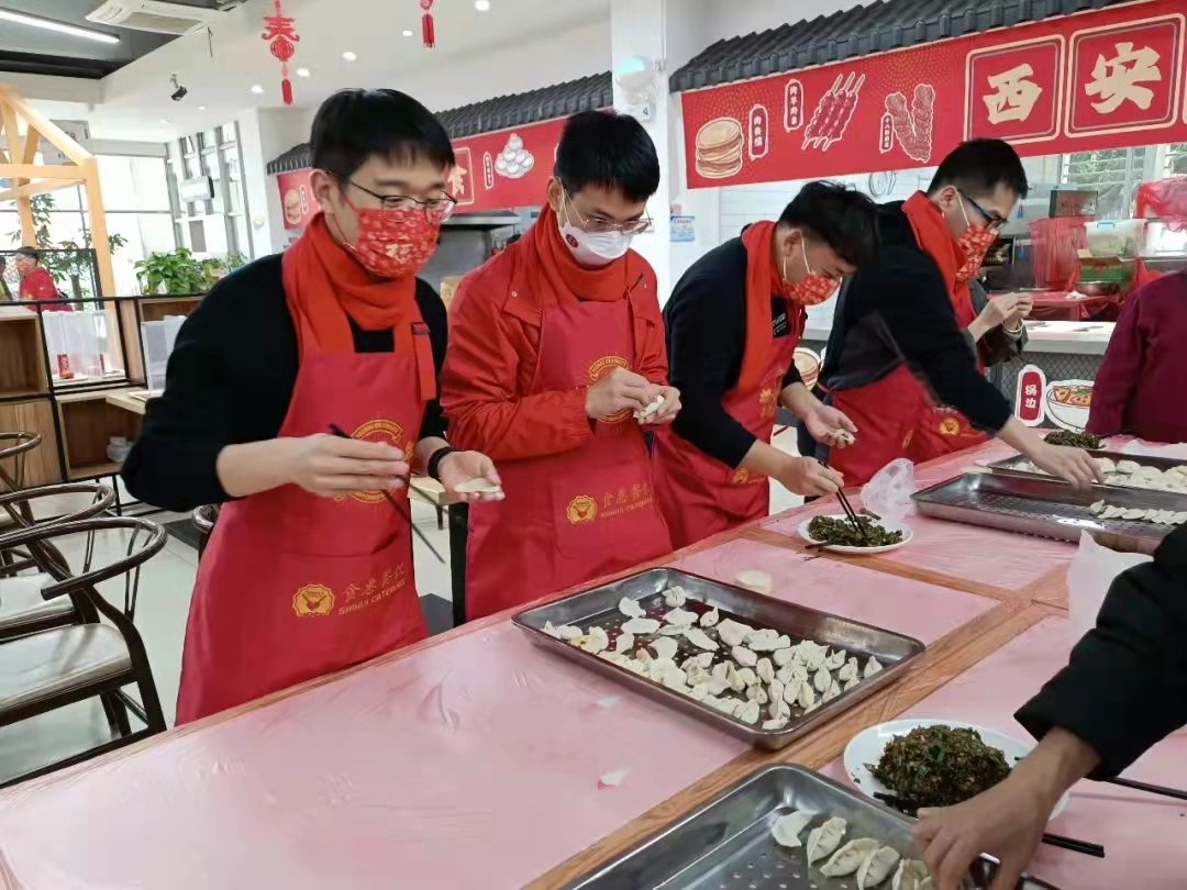 除夕下午,学院在京元餐厅组织石化学子一起包饺子、做肉夹馍,老师同学们欢聚一堂,在动手制作美食的同时,拉家常、畅谈新年,让留校同学即使身在异乡,也能切实感受到温暖关怀。晚上,老师、学生一起吃学校为留校同学们精心准备的年夜饭。活动现场张灯结彩、其乐融融。让所有留校同学,一起在福大过一个红火新年!