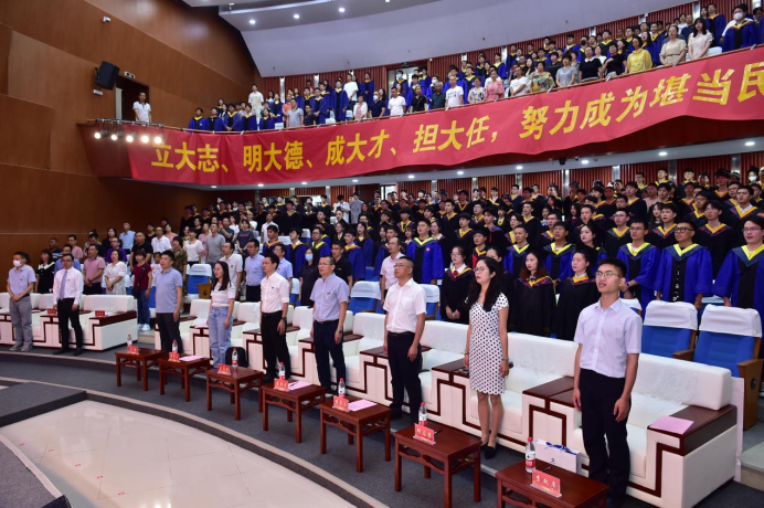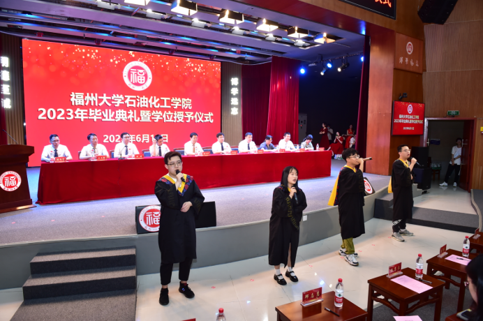 与会人员全体起立,奏唱国歌。在庄严的国歌声中,本次典礼缓缓拉开帷幕。首先,由常务副院长侯琳熙教授宣读授予学位决定、2023届优秀毕业生、2023届本科毕业生就业升学先进集体及个人表彰决定。