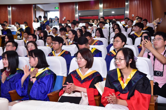院长江莉龙研究员首先代表学院向各位毕业生表示热烈的祝贺!向辛勤养育你们的家长和悉心教诲你们的老师致以最衷心的感谢和崇高的敬意!