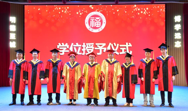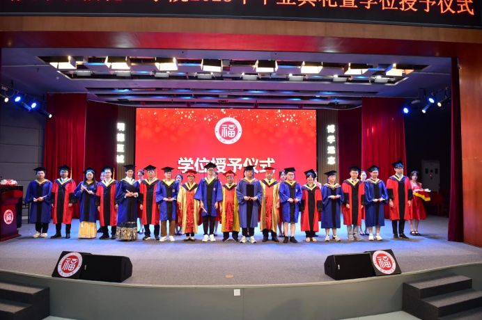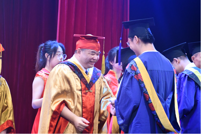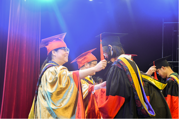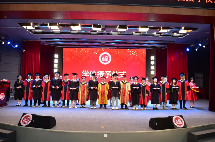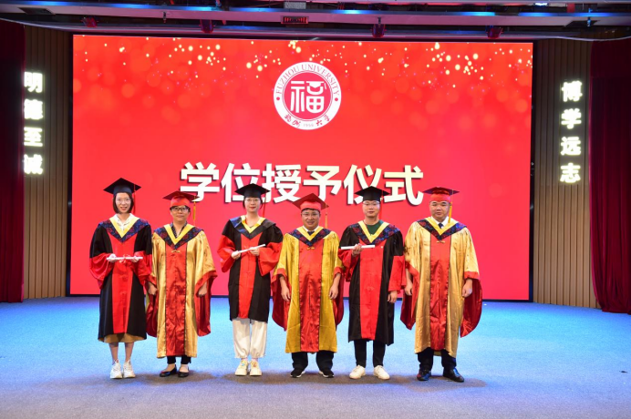 院长江莉龙研究员、常务副院长侯琳熙教授、副院长李玲教授、工会主席赵素英教授、蔡伟龙研究员、汤育欣教授、刘福建教授、张朱武教授、罗宇研究员为毕业生拨穗正冠。