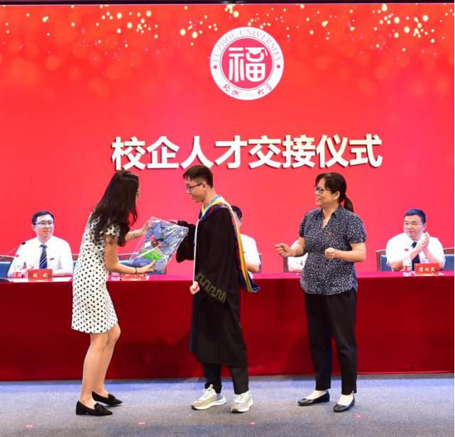 万华化学(福建)领导为毕业生发放员工证件和工作礼包