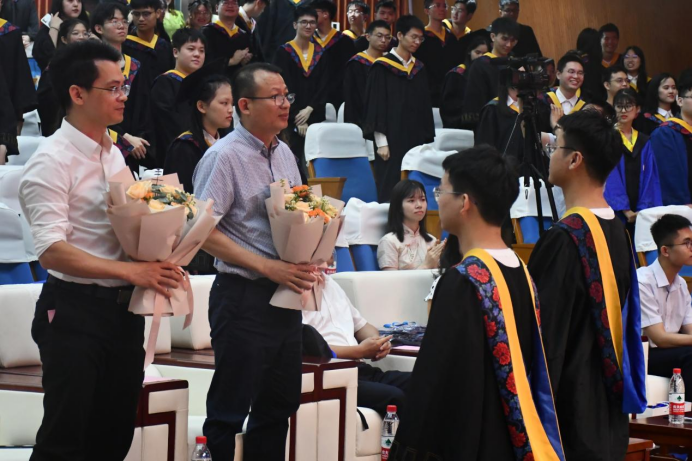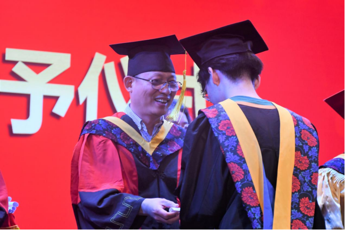 李卫东博士作为教师代表上台发言,他以自己读书的经历勉励毕业生们要永远怀揣梦想、勇攀高峰,努力成为科研人才、行业精英。李卫东博士表示,学校和学院始终都是大家坚实的后盾,欢迎毕业生们常回家看看。