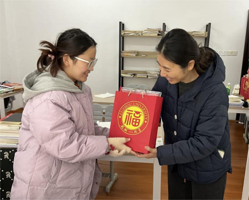 2024年研究生考试在即,为坚定考研学子信心,表达学院关怀,学院党委蒋林娟副书记、毕业班辅导员深入“一站式”学生社区考研自习室,为备战学子发放考研专属“福”袋,并送上温暖祝福。