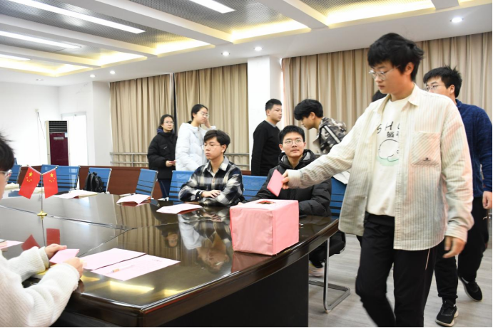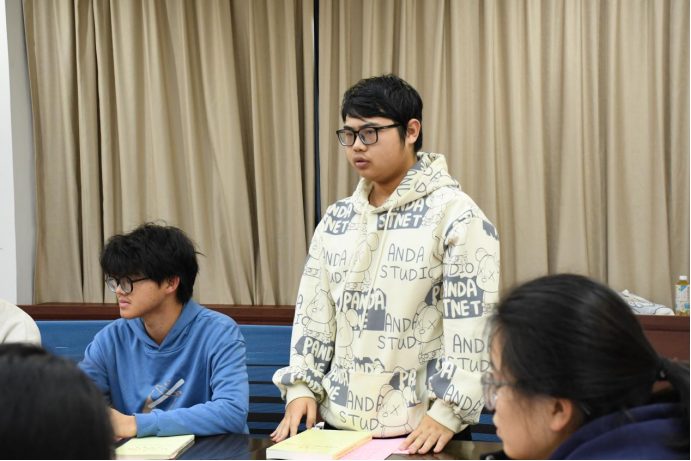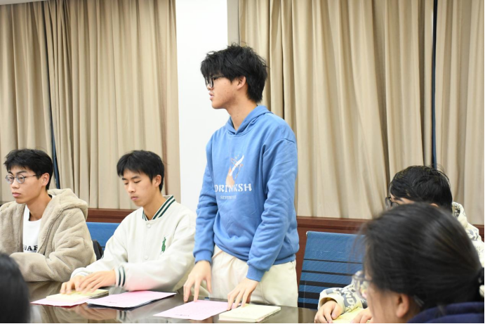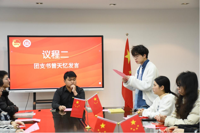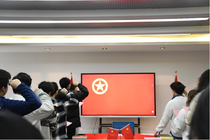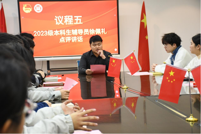 2023级本科生辅导员徐佩礼为会议做点评,他首先对班级团支部工作表示充分肯定。对如何成长为一名优秀的共青团员,他对同学们提出三点要求:一是要用先进的思想武装头脑,树立坚定的理想信念;第二要有良好的作风和品德,多行好事莫问前程;第三要认真学习,脚踏实地,能刻苦钻研科学文化知识。最后,团支部书记带领支部全体团员重温入团誓词,牢记初心使命,更加深刻地认识到作为一名青年团员的责任和义务。