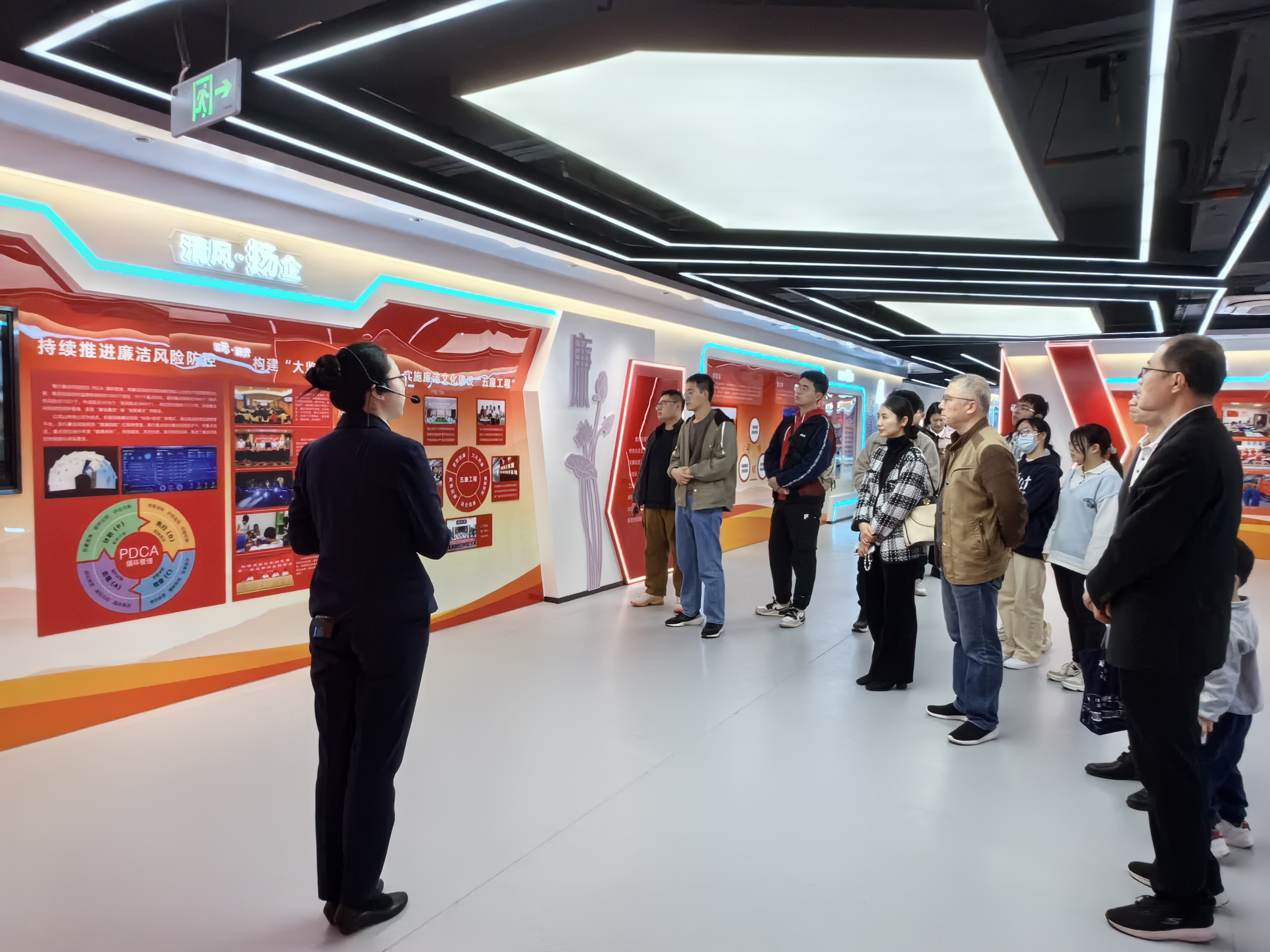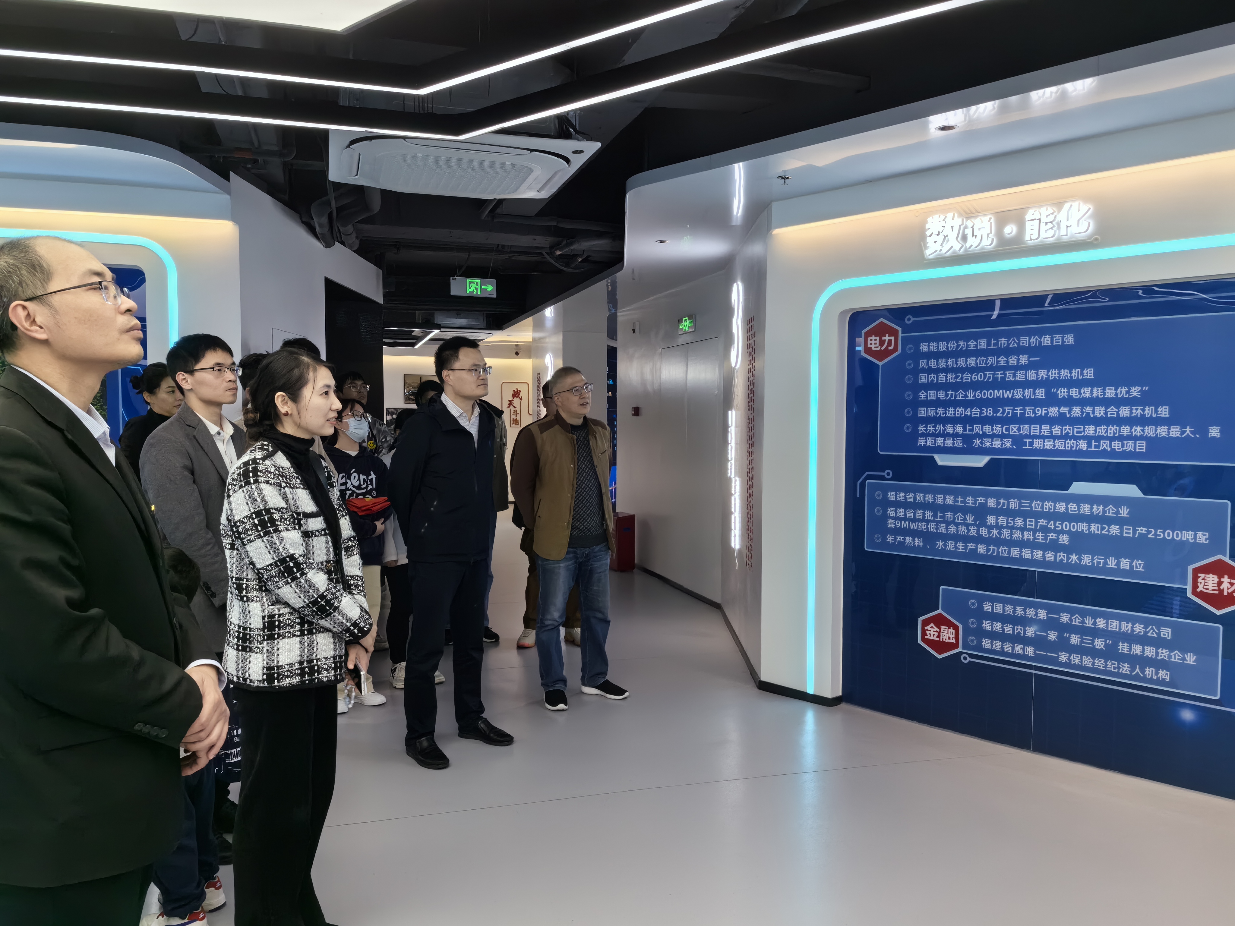 在福建“大思政课”实践教学基地——能化集团启航之路展厅,实践队在讲解员的解说引导下,深入了解能化集团的发展历程、产业布局、“十四五”规划、党建工作等情况。能化集团启航之路展厅以“能·化”为主题,“启航”二字为主线,通过“新发展理念指引启航、继往开来奋力启航、同心筑梦聚势起航、党建铸魂保障启航”四个展厅,融入多媒体技术,利用VR、动感沙盘等技术以突破空间限制,全方位、多层次地描绘了能化集团在以习近平同志为核心的党中央领导下不断发展,坚定不移做优做强做大企业,加快构建世界一流企业的奋进历程。