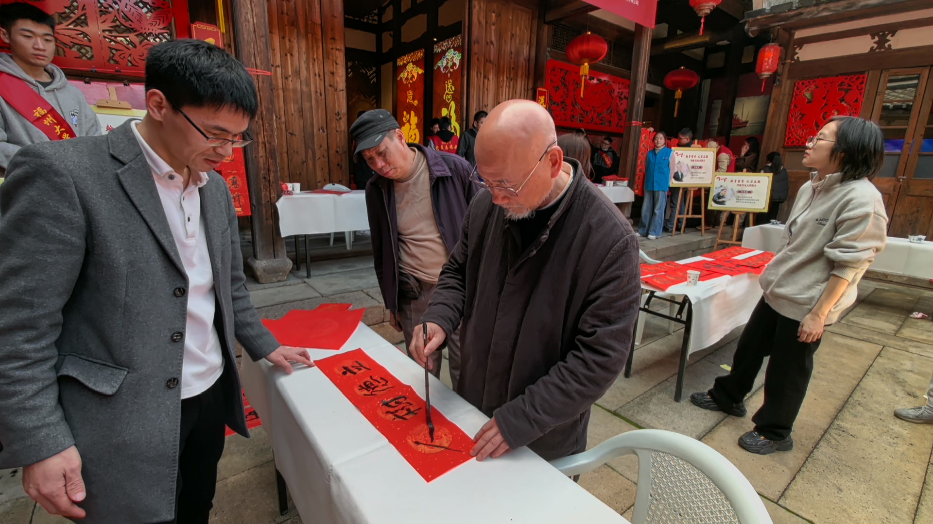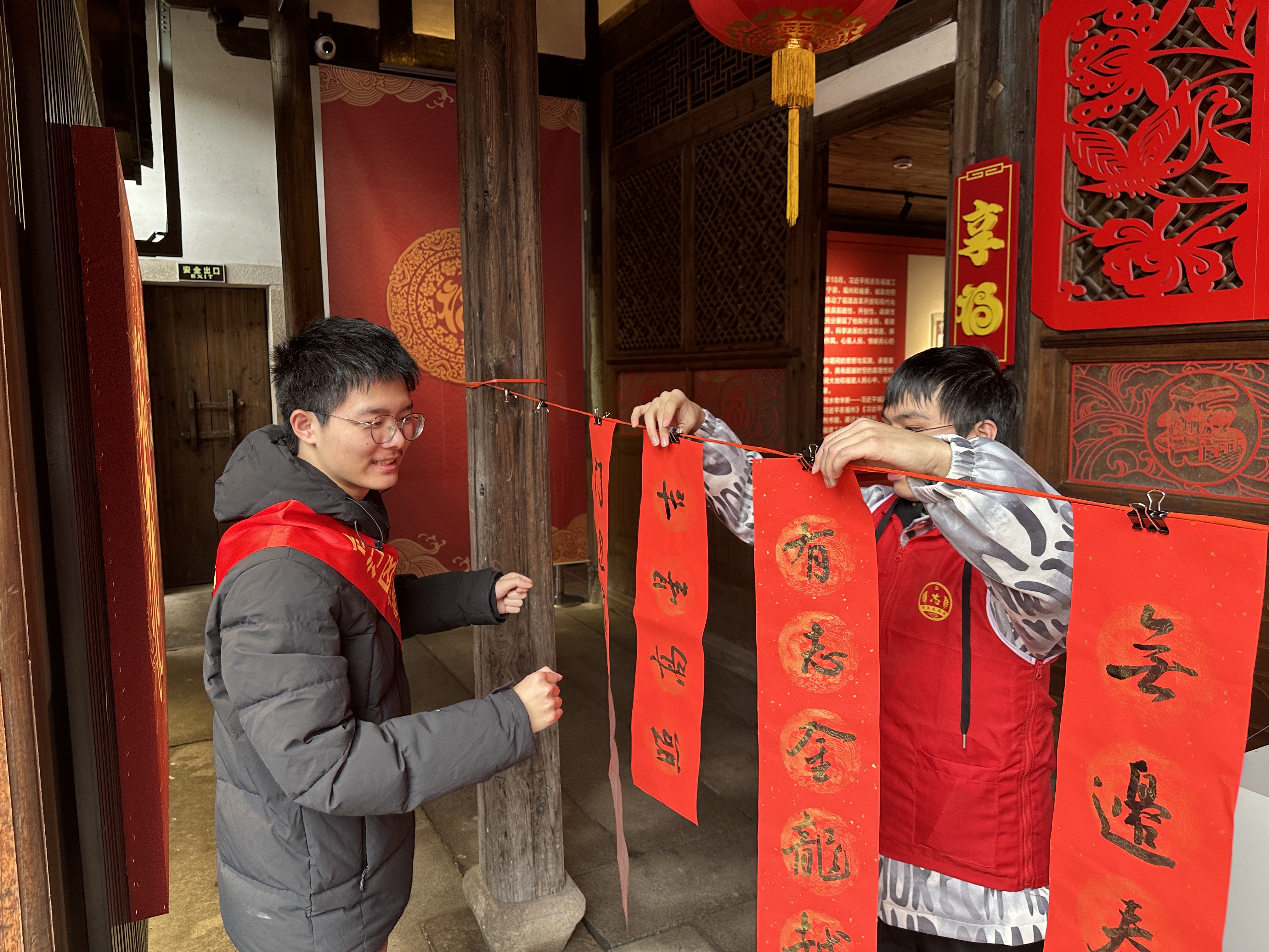 实践队队员还主动参与到福文化博物馆举办“翰墨迎春 辰龙送福”义务写春联活动的志愿服务,沉浸式体验“福”文化,为广大市民朋友们送上福气满满的新春祝福。