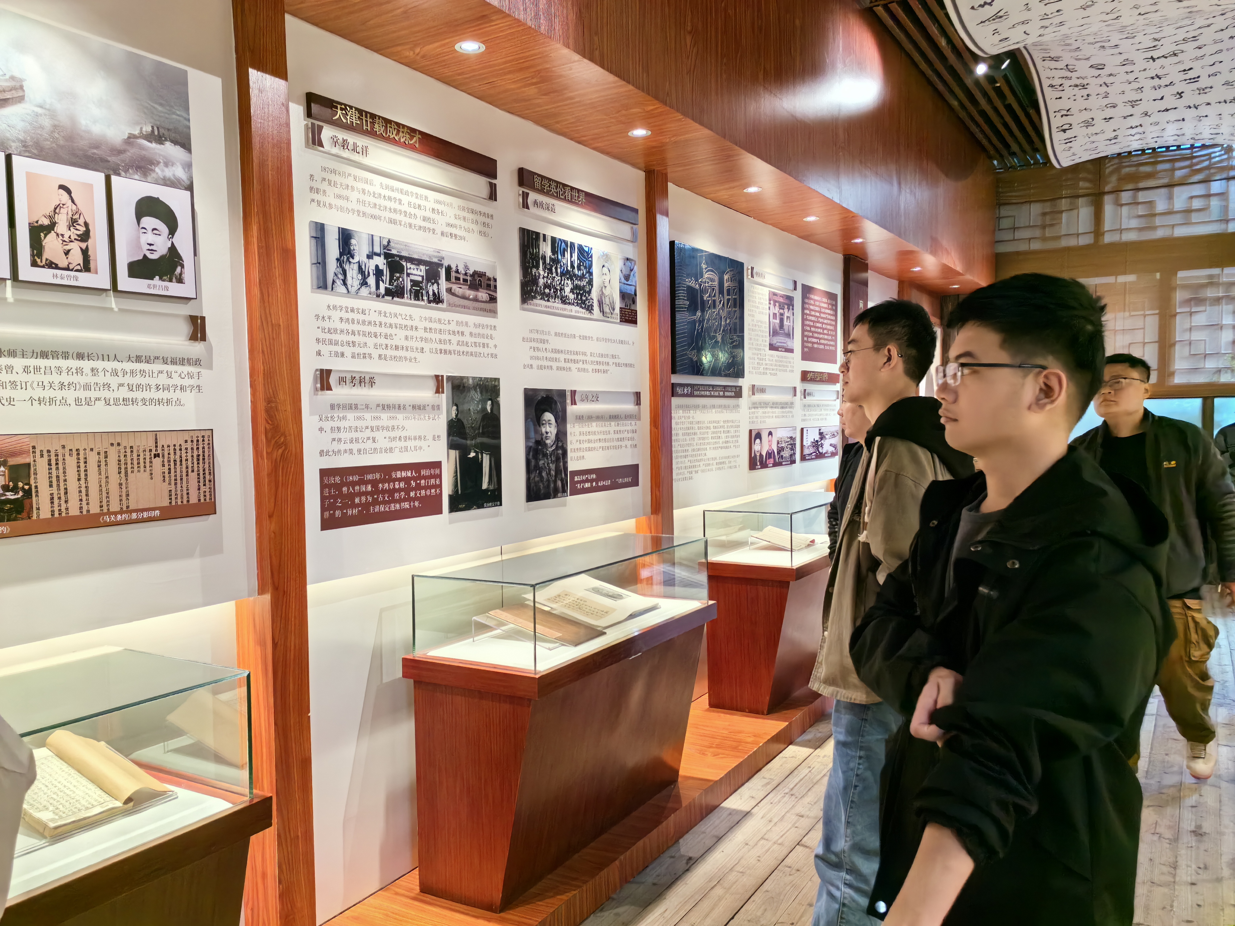 在严复故居,实践队队员们在展厅们通过一段段文字、一张张照片、一件件实物,围绕“少年砺志、投身海军、启蒙图存、教育救国”四个主题详细了解“中国西学第一人”“中国近代思想文化史上里程碑式的巨人”严复波澜壮阔的一生,领悟学习严复“严谨治学,首倡变革,追求真理,爱国兴邦”的精神品格,深切感受严复的思想文化内涵,感悟这位先进中国人的非凡见识与勇气,缅怀先哲为挽救祖国危亡、为中华民族复兴而奋斗终身的的历史功绩。