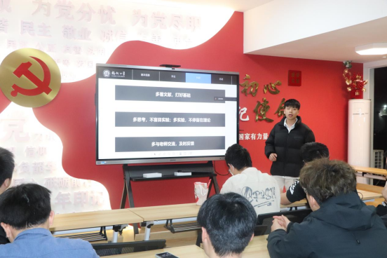 陆奕嘉同学结合自己的学习经历,建议研一的同学们在多阅读文献的同时,也不要忘记专注于研一的课程,研精覃思,获取基础知识和理论框架,对于后续的深入研究至关重要。接着,他还分享了自己所使用的一些数据模拟软件以及科研网站,为大家在以后的科研实验中提供便利。