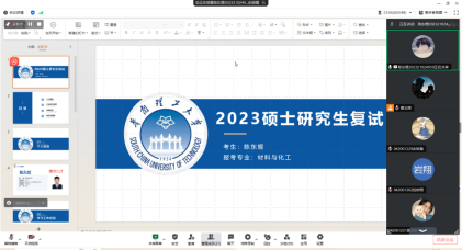 3月11日晚,考研功能型党支部邀请2019级成功升学华南理工大学的陈东煜同学进行线上复试指导。陈东煜同学结合自身复试经历,详细介绍了复试流程、复试备考学习经验、个人科研PPT制作、面试技巧、注意事项等准备工作,建议同学们从多方面着手准备,充分获取信息,提高录取几率。