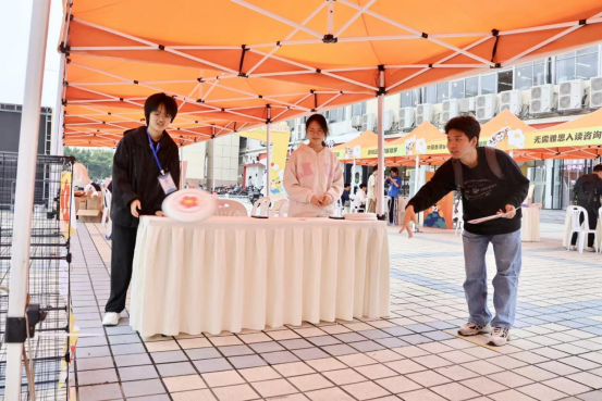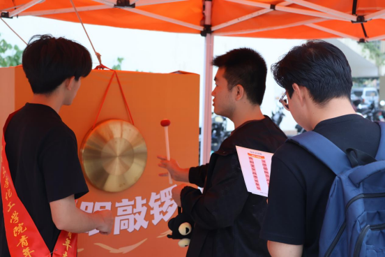 活动现场还设置了名校如意勾、飞盘大赛、蒙眼敲锣、抽奖兑换等4个游戏互动板块,在现场签到领取一张“通关护照”,参与游戏互动,多多集章,每集齐5个印章就获得一次抽奖机会,通过一系列丰富多彩的互动游戏为同学们了解理想院校的生活方式搭建了一个生动有趣的桥梁。