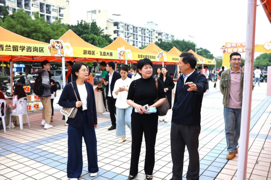 留学嘉年华活动在旗山校区青春广场顺利举行。校学生工作部(处)张红部(处)长、校对外合作与交流处胡培杰副处长、校就业指导中心赵燕松主任、校机关党委张玉辉副书记等莅临现场指导。