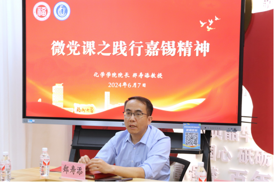 郑寿添院长的微党课以践行嘉锡精神为主题,结合科研经历给在座的青年党员生动解读了卢嘉锡先生所倡导的“C3H3”教育理念。他勉励青年学生党员,要传承和弘扬科学家精神,赓续爱国主义精神,肩负起历史赋予的科技创新重任,做有价值、有意义、有情怀的科研,不断向科学技术广度和深度进军,为实现中华民族伟大复兴作出新的更大贡献。