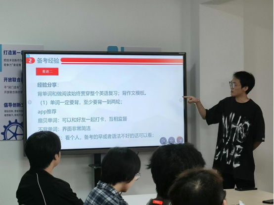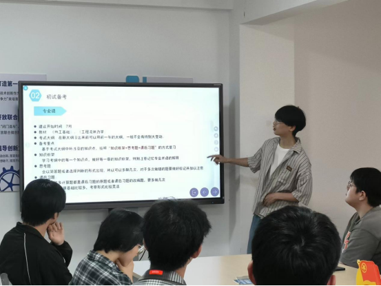 将考研升学作为抓学风建设的牛鼻子,坚持一体推进,做到“双向奔赴”,坚持早谋划、早部署、早介入,聚力共研,全力以“复”。召开年级升学就业动员大会,邀请学院领导、毕业班辅导员开展升学就业指导,引导学生提前做好升学规划,强化专业课程学习,把握“第一课堂”的“第一手知识”。利用“一站式”学生社区共享空间,深入开展考研经验分享会、保研经验分享会,发挥传帮带作用,激发学生学习内生动力,明确个人发展方向,助力学生赢在“考研起跑线”上。