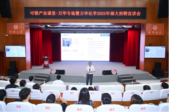 “可镁产业课堂”第一讲万华专场在图书馆博学厅顺利举办。万华化学集团股份有限公司高级顾问赵继德先生为同学们带来题为“万里征程今始起,华彩人生初绽放”的主题演讲。
