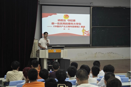 为引导广大团员青年厚植爱党、爱国、爱校的情感,让红色基因、革命薪火代代传承,学院团委书记伍宇翔老师、团委副书记何杰老师分别于旗山校区文3-101、铜盘校区科报厅B为2024级新生开展《讲政治,守纪律,做一名优秀的青年大学生》专题讲座。