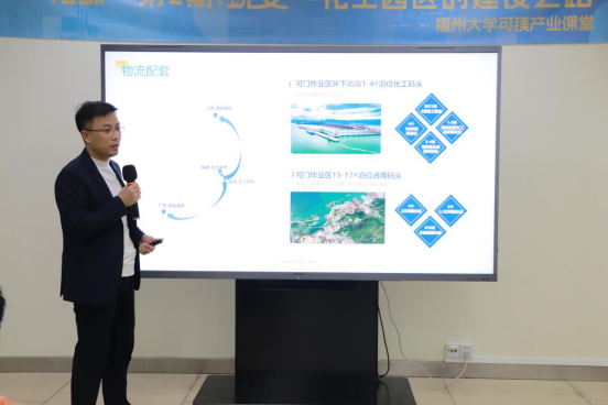 实地参观结束后,本次研学导师申远产业园管理有限公司执行董事、总经理、学院校外辅导员、企业导师陈曦先生为同学们带来《“以我之力,追我所愿”—化工园区的建设之路》的主题分享,让同学们进一步深化理解化工一体化产业园的建设理念和详细规划。陈曦先生先以自身的发展经历为例启迪同学,从“以我之力,逐我所愿”的个人成长到恒申集团从“一滴油”到“一块布”的产业链发展历程,为同学们生动讲述了11年来申远一体化产业园建设的理念以及未来的规划。