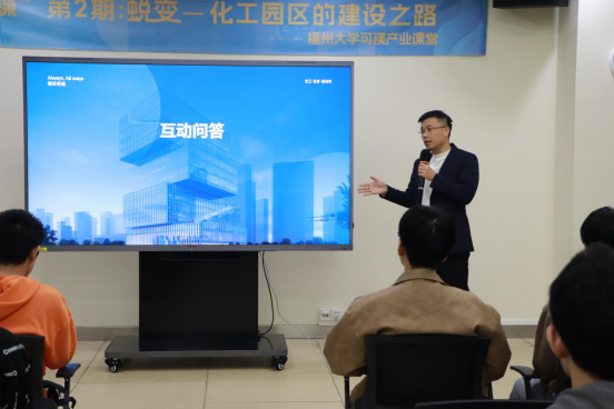 课堂互动环节,同学们就一体化园区的先进理念、集团的未来发展方向、人才培养、行业发展需求等方面进行提出个人的疑惑和问题。陈曦先生针对同学们的问题耐心答复并给出许多实用建议,并寄希望于同学们在校期间注重培养自身能力,练就个人过硬本领,期待在未来能够与同学们在恒申集团再次相遇,共同为行业的发展贡献一份力量!