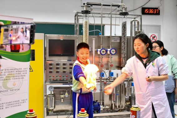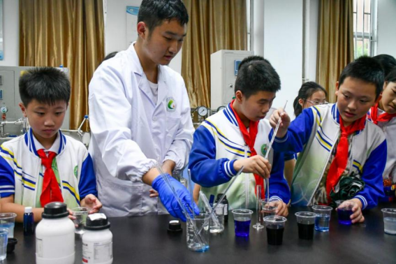 在化学化工国家级实验教学中心,同学们在志愿者们的带领下参观了实验教学中心并化身"小小化学家",通过趣味实验近距离感受化学化工的神奇魅力。