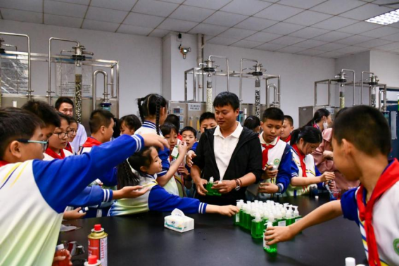 为每位同学送上了一份特别的礼物——特制洗手液。这款洗手液不仅展示了化工在日常生活中的实际应用,更让学生们意识到,化学不仅是“魔法”,更是守护我们生活的贴心力量。
